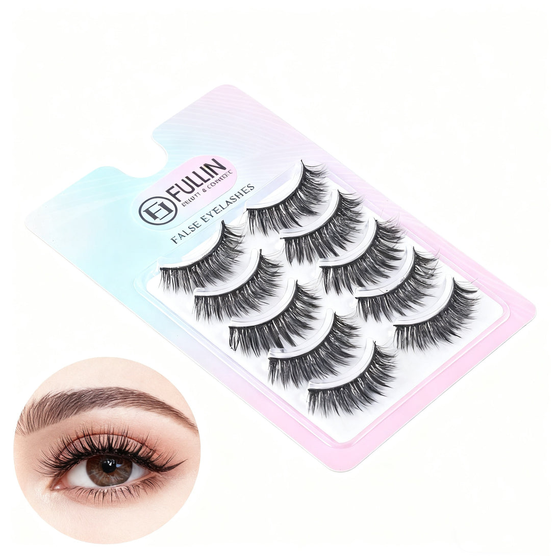 Introducing the 5 Pair feather Lashes — a refined collection of strip lashes designed to create a natural, feathered, and multidimensional look with every wear. Ranging from 9–13mm in length with a soft C curl, each lash is delicately crafted from high-quality synthetic fibers and set on a lightweight, transparent band for a seamless, comfortable fit. These lashes offer airy volume and a lifted, layered effect, enhancing your eyes with soft definition and a feather-like finish. Reusable and easy to apply, feather Lashes are ideal for effortless daytime beauty, natural glam, or adding subtle depth to any makeup look — always light, lifted, and beautifully natural.